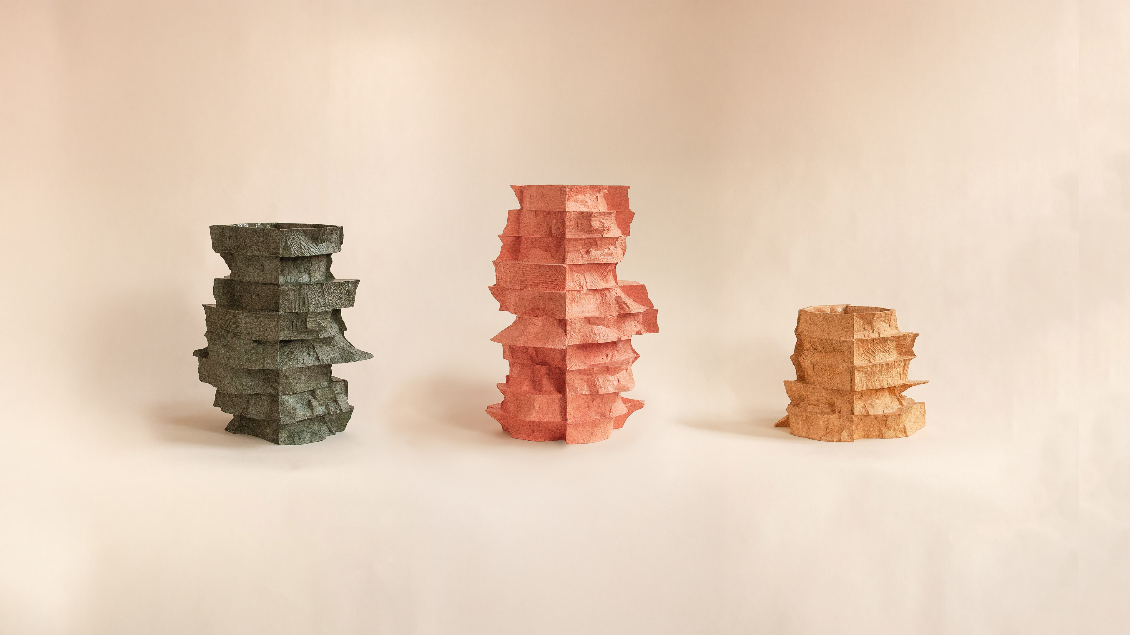The vases are produced using a modular system in which individual elements are stacked on top of each other. This enables the creation of vessels whose compositions are as abundant as the stars in the sky.